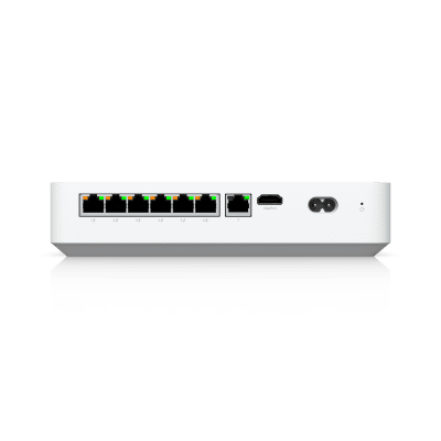 UniFi Protect NVR Compacto con Soporte de Disco Duro de 3.5′ con un Switch PoE Integrado de 6 Puertos 40 W y un Puerto HDMI Viewport.