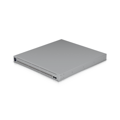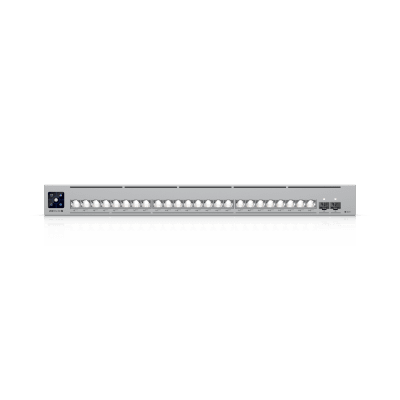 Switch administrable Capa 3 con Etherlighting™, con 24 puertos RJ45 con PoE+++ (2.5G/10G) y 2 puertos SFP28 de 25G, para montaje en rack 1U y con soporte de respaldo de energía CC (RPS).