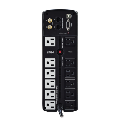 CyberPower CP1500AVRLCD garantiza protección de respaldo de energía para sistemas de cine en casa, dispositivos multimedia, equipos de TI, computadoras, estaciones de trabajo, dispositivos NAS / Storage, dispositivos de telecomunicaciones, dispositivos de red, sistemas de seguridad / emergencia y sistemas de vigilancia. El producto cuenta con tecnología de ahorro de energía para ahorrar costos de electricidad, al tiempo que proporciona respaldo de batería, tomacorrientes protegidos contra sobretensiones y filtro EMI para proteger sus dispositivos.