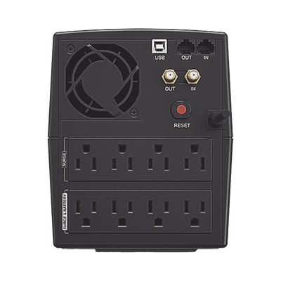 - Total de Tomas: 8 NEMA 5-15R (4 Batería y protección, 4 solo protección)