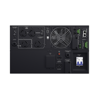 Este UPS compatible con generador incluye paquetes de baterías intercambiables en caliente para mantenimiento sin interrupción de energía y un interruptor de apagado de emergencia (EPO) para permitir a los usuarios apagar el UPS inmediatamente durante una emergencia.