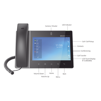 GXV3380, combina un teléfono de video IP de 16 líneas con una solución de colaboración multiplataforma y la funcionalidad de una tableta Android para ofrecer una solución de comunicaciones todo en uno. Este teléfono ofrece una experiencia poderosa a través de su pantalla táctil capacitiva (1280×800) de 8 pulgadas, cámara de 2 megapíxeles, entrada/salida HDMI para compartir contenido, micrófonos duales y soporte para video HD de 1080p. El GXV3380 agrega dos puertos Gigabit con PoE / PoE +, Wi-Fi (802.11ac) y compatibilidad con Bluetooth. También ejecuta Android 7.x y ofrece acceso instantáneo a cientos de miles de aplicaciones. Al combinar un teléfono de video IP de vanguardia, una solución avanzada de colaboración y la funcionalidad de una tableta Android, el GXV3380 ofrece a las empresas de todo el mundo una potente solución de productividad y comunicación de escritorio.