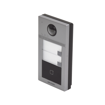 Videoportero IP (IP65 + IK08) con Llamada y apertura desde APP Hik-Connect / Soporta 2 Departamentos / PoE Estandar / Interfaz WEB para configuración / 2 puertas