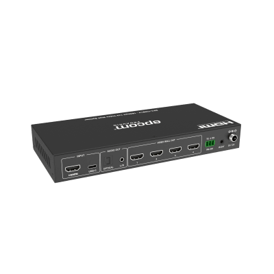 El controlador de videowall 1×4 de 18Gbps está diseñado para capturar, convertir (AD), enrutar y distribuir señales de todos los formatos a la videowall (pantallas LCD), manteniendo una transmisión de señal digital auténtica. Ofrece entrada HDMI y USB-C con una resolución de hasta 4K@60 4:4:4 y 4 salidas HDMI. Admitir multiples modos de videowall para configurar la salida de vídeo. Además, también es compatible con salidas de audio óptico y analógico L/R extraídos. Puede controlarse mediante botones en el panel frontal, control remoto IR y comandos RS-232