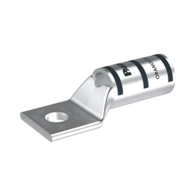Zapata de compresión de cobre estañado LCA3 0-56-X, un orificio, tambor estándar, tambores codificados por color marcados con números de índice de matriz de Panduit y de un competidor especificado para la adecuada selección de matrices. Una mirilla de inspección ayuda a comprobar visualmente la inserción total del conductor, y el material estañado previene la corrosión. Listado UL y certificado por CSA para 35 KV y con calificación de temperatura hasta 90°C.